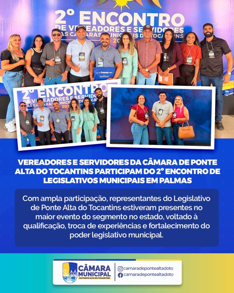 Com ampla participação, representantes do Legislativo de Ponte Alta do Tocantins estiveram presentes no maior evento do segmento no estado, voltado à qualificação, troca de experiências e fortalecimento do poder legislativo municipal.